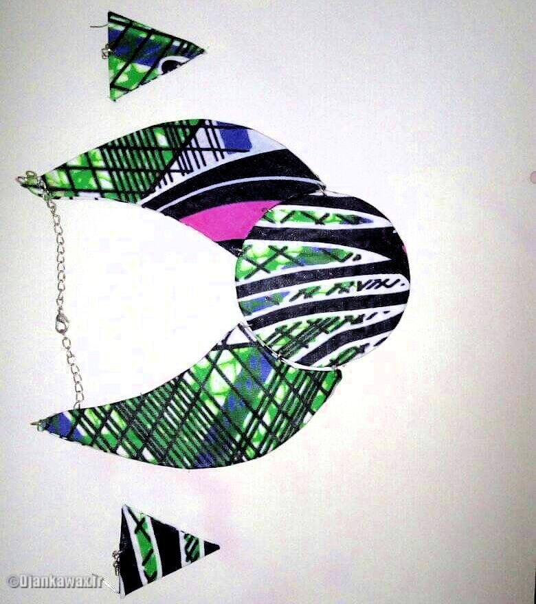 Collier + boucles d'oreilles en tissu pagne wax africain