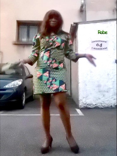Mode africaine, Ensemble robe-tunique et pantalon en tissu pagne wax