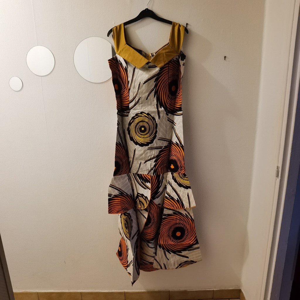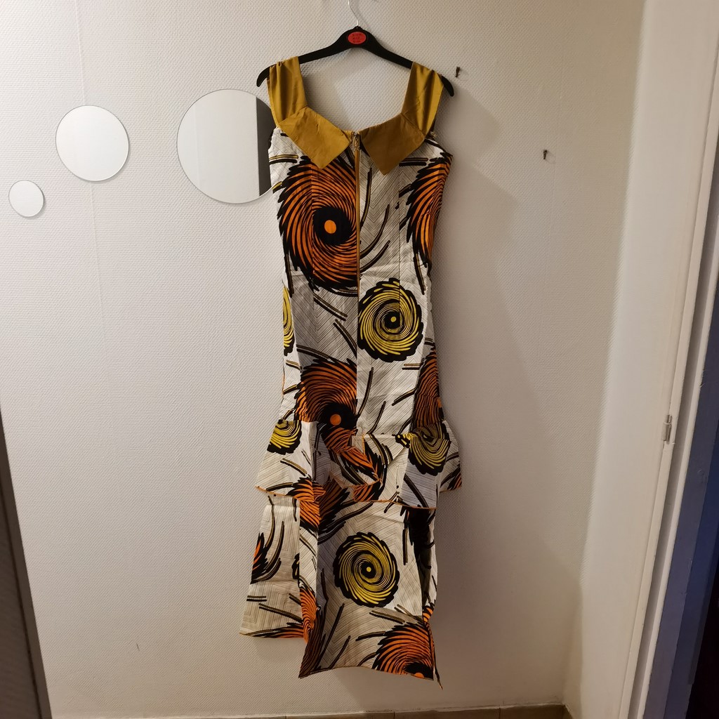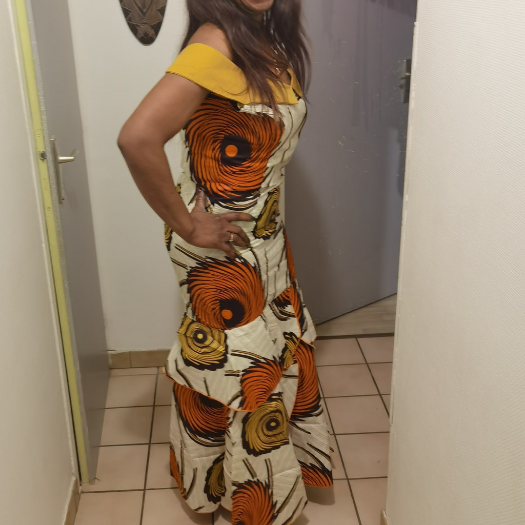 Mode africaine, Robe africaine en tissu pagne wax, Doublée, fente, Longueur: chevilles