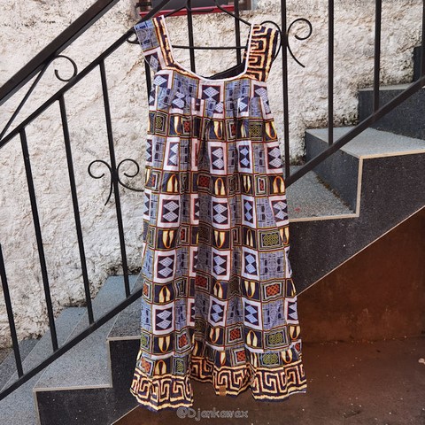 Robe femme, kaba, boubou en tissu pagne wax du Cameroun