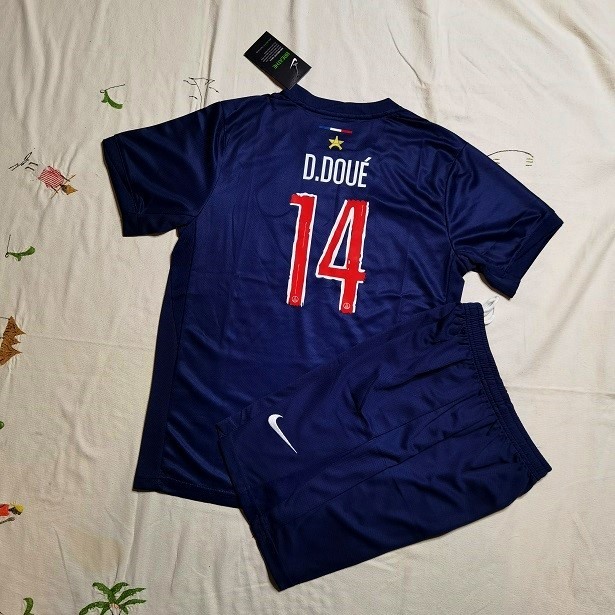 Ensemble Football Maillot + Short enfants PSG Paris customisé D. Doué