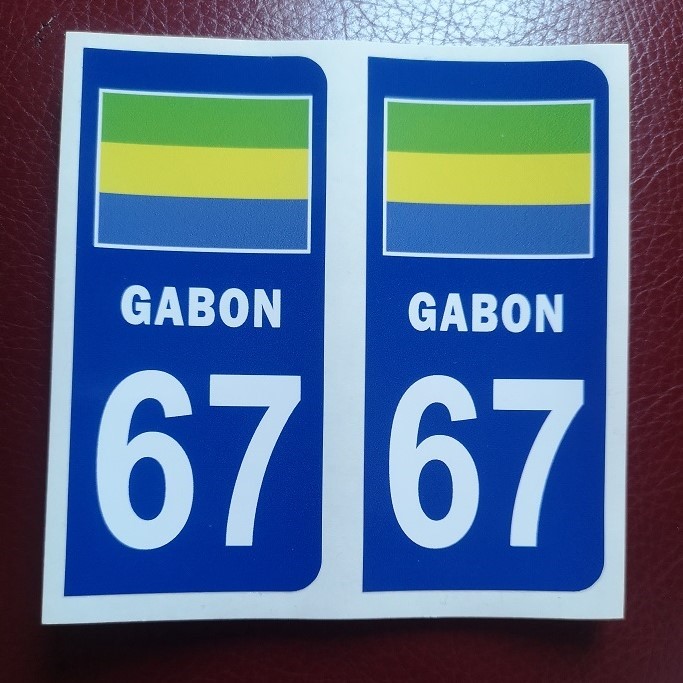 Personnalisez votre véhicule,2 Stickers Adhésif Plaque Immatriculation 67 (Bas Rhin) drapeau Gabon,Nous avons aussi le Sénégal et la Cote d'Ivoire,