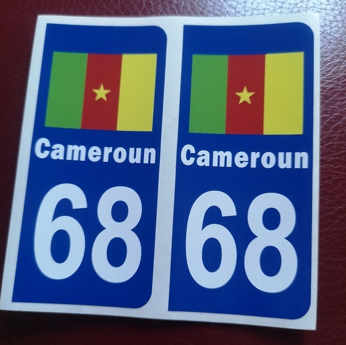 Personnalisez votre véhicule,2 Stickers Adhésif Plaque Immatriculation 68 (Haut Rhin) drapeau Cameroun,Nous avons aussi les département 01, 54, 57, 67,68, 74