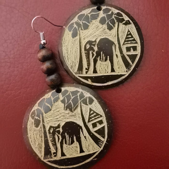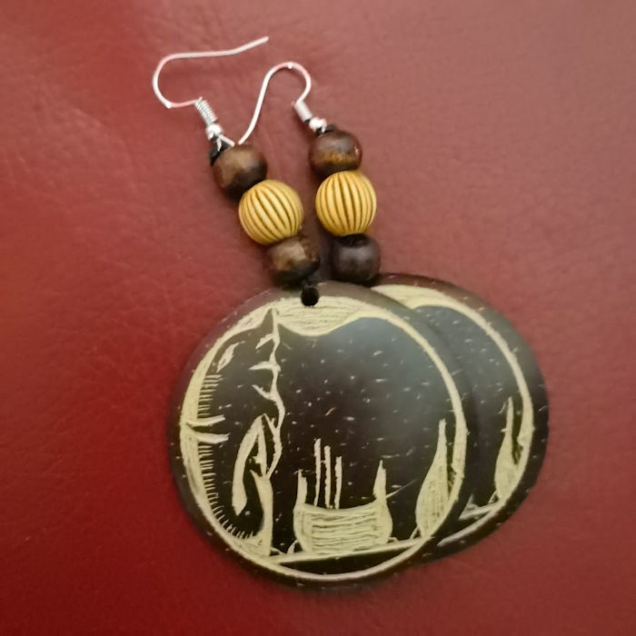 Boucles d'oreilles artisanat africain en perles et noix de coco Neuves