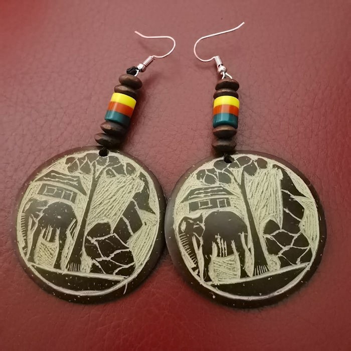 Boucles d'oreilles artisanat africain en perles et noix de coco Neuves
