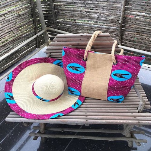 Chapeau et Sac en tissu pagne wax ou Ndop Cameroun
