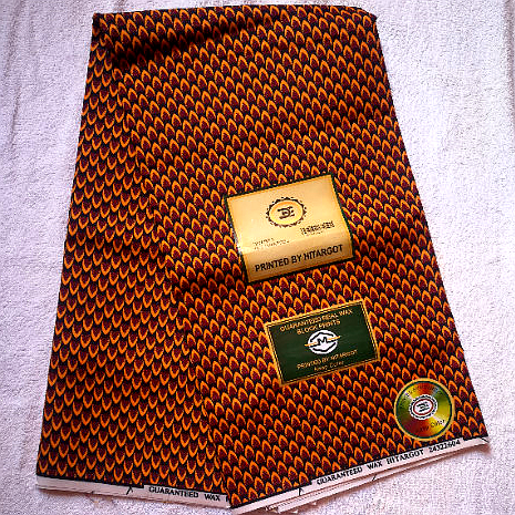 Tissu pagne wax du Cameroun, 6 ou 12 yards, largeur 120 cm, Ecailles orange Cameroun
