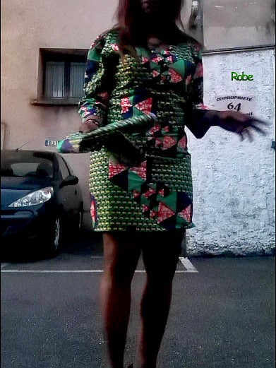 Mode africaine, Ensemble robe-tunique et pantalon en tissu pagne wax