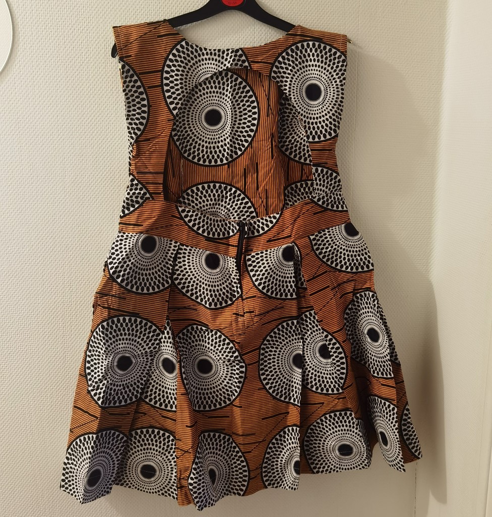 Mode africaine, Robe africaine en tissu pagne wax, dos nu, Longueur: genoux