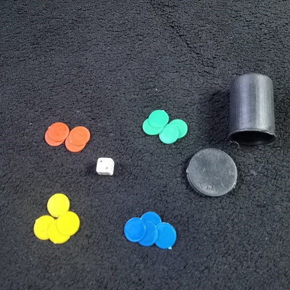Fabrication artisanale, plateau sous verre à accrocher + 1 boite avec 1 dé et 16 pions de 4 couleurs,,
