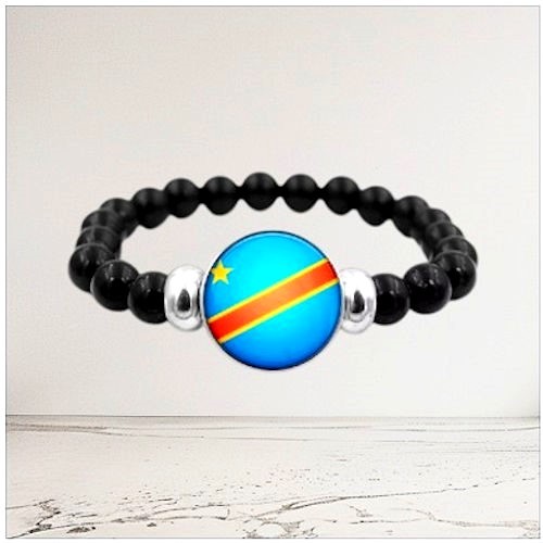 Bracelet plaque acier drapeau Congo RDC,